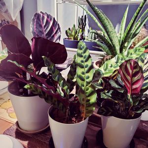 育成ライト💡がやっと届きましたので、既に組み立てあった棚にカラテアさん達を移動しようと思い、せっかくなので、ウチにあるカラテアさん達(クテナンテとかも混ざってます)を集めてみました🎵 数えたら20鉢ありましたよ😅💦 いつの間にかこんなに集まりました🥰 毎朝君が1番美しいよ!と声掛けをして葉水をしてます😁 ちゃんと平等に愛でてます❤️