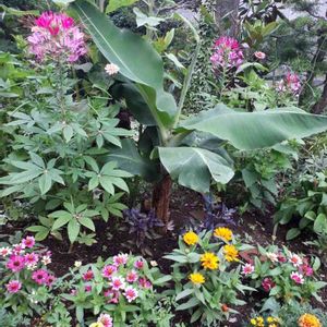 懲りもせず😅また、モンキーバナナ🍌を 花壇の真ん中に植えました❗ 去年の子はやっぱり冬越しできなくて… 今年こそは😆