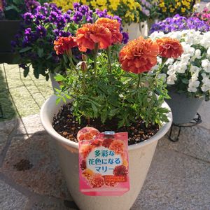 こんにちは🌞 今日も🍃がつよいです! お友達の記念日に届けてきました🔴❤️🔴 昨年気になったお花🔴❤️🔴の1つです。 マリーゴールド 「ストロベリーブロンド」 🌌はマリーゴールドだけで寄せ植えを✋ 元気を頂ける赤いお花でしょう❤️🤗❤️