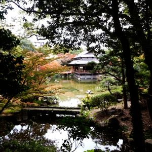 ウスギモクセイ✨✨ とても優しい香りにつつまれています。 黒田家六代藩主継高公の別荘 友泉亭公園のシンボルです。江戸中期から植えてあるらしいです。 夜はプロジェクトマッピングもあってます。