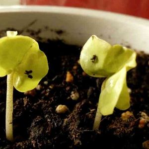 4月末に蒔いた綿花の種、2粒蒔いて両方とも発芽しました。発芽率高いですね。種は白い綿にくるまれてました。種を蒔く時、周りの綿を取り除きましたが全部は取れなかったので綿がついたまま種を蒔きました。