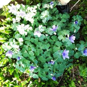 我が家の庭のミヤマオダマキちゃんを真上から撮りました。株が約40cm四方にまで拡がっています。