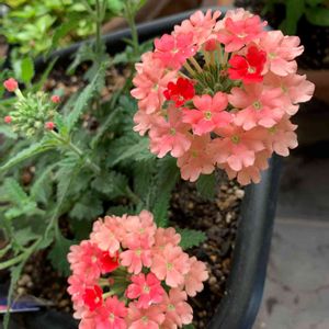 バーベナ✨🌸 ホームセンターのお花のイベントにて… この花苗を差し上げますって。。。 たくさん咲くと可愛いですよー いい笑顔😄のお兄さん💕 ♪ o(≧▽≦)o ♪ありがとッ もらった時は、小さくて花も咲いて いなかったのですが。。。 今は、こんなに可愛い花が❀.*・゚❀.*・゚ 桜🌸のような小花が集まって 咲く姿がかわい~(๑•ᴗ•๑)♡ 「美女桜」ビジョザクラと言う 別名がつく花です😊💓