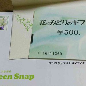 GSから『2019桜フォトコンテスト 』優秀賞 の商品・花とみどりのギフト券500円分届きました。ありがとう御座います。