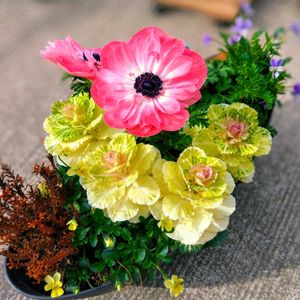 お昼過ぎてしまうと 寒くなりそうだったので、早めに作業🌸🍀 今年も葉牡丹の寄せ植えを作りました😄
