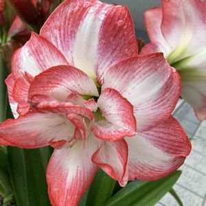 いつも通るお蕎麦屋さんの奥さんはお花好きなのか 色々なアマリリスの鉢植えを並べて見せてくださってます アマリリス フォーウェイマジカルタッチは赤い花びらに細く白い覆輪のあるアマリリスで20cmくらいの大きなお花 オランダからの新しい品種のようです アマリリス(ピッペアストラム) 美しい感情? アマリリスはユリのような形のお花ですが 少しバラを足したような 花姿が綺麗なアマリリスでした 検索すると 美しい感情と出るのですが 詳しいことが 私にはわかりませんでした アマリリス(ヒガンバナ科アマリリス属) (ピッペアストラム属) 別名 ピッペアストラム 花期 4~6月 秋咲きの品種であれば10月 今回 投稿したお花は今 咲いています 南アフリカ原産 アマリリスは真っ直ぐに伸びた茎の先に花径10~20cmくらいのユリに似たお花を咲かせる球根植物です花色は赤やピンク、白などがあり 咲き方も一重から八重咲き 花びらも尖ったもの丸みを帯びたものなどバリエーションが豊富です 茎は大きく30~50cm光沢のある緑色をしています 茎の中は空洞になっているため 重みで折れてしまうこともあるようです 花言葉 誇り おしゃべり