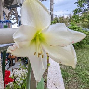 白色のアマリリスが咲きましたよ🤗 自宅のベランダにて。 2022年5月23日撮影