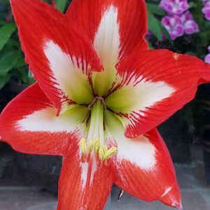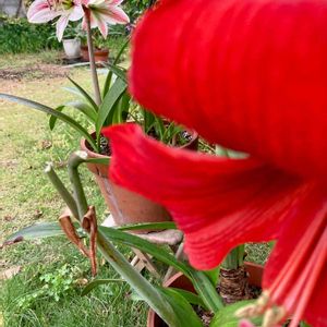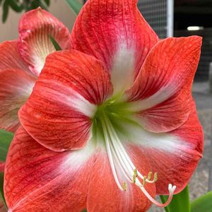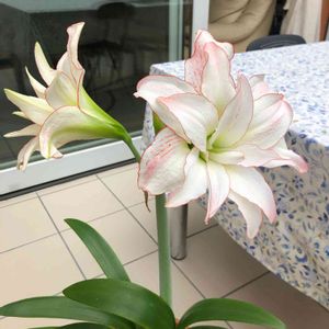 アマリリスが開花🙌 私の顔くらいある大きさ👏 植え替えをして沢山さきそうです!