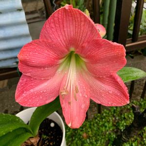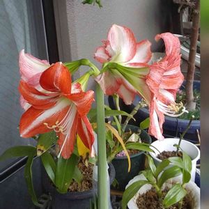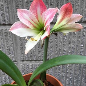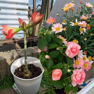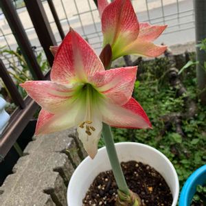 古い鉢にあった球根を植え直したら、こんなのお花が咲きました💕✨ アマリリスかな・・🪴☺️