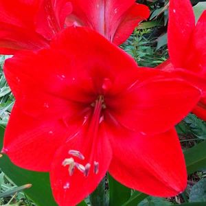 ❤️真紅アマリリス満開 ゴージャスです❗️ 数年前、ご近所のI.Kさんから株分けしたものをいただきました。当時は好みではなかったのですが、年数を重ね魅力がわかるようになりました。