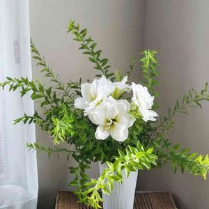おはようございます😊! 畑で咲いたアマリリス、 思い切って切り花にしました。 雪柳の枝と合わせて… 一本だけなのに、 このボリューム(^-^)。 咲いている4輪と蕾がまだ2つ 付いています。 どうか、水揚げ良く、長持ちしますように…✨✨。 今日も素敵な1日で ありますように✨✨✨✨。