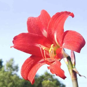 こんばんは😊 アマリリス❣️ 公園の片隅に風避けの簡易温室⁇ ほぼ見られる事のないコーナーに、ひっそり咲いています💖😍 頑張ってね💕🎶 チーム・ブルー💙💜 ㊗️カタカゴさん800pic