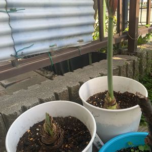 アマリリス、真っ直ぐ伸びてくれてます🤩 けど、一緒に植えた子は😔 伸びてこない💦