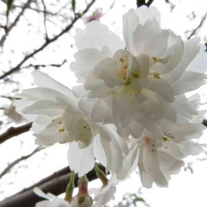 2017.11.19撮影 冬に咲く桜4種 その2 コブクザクラ(子福桜) 八重咲、白花、小輪、二季咲き。花弁枚数:20~50枚、花期:10月下旬~12月・3月上旬~下旬 シナミザクラとジュウガツザクラの雑種あるいはエドヒガンの雑種と考えられていまる。一つの花に1~3個が結果することから、「子福桜」と呼ばれているが、結実は環境因子のよって変化し、結実しない場合が多い。秋の花と冬の花は大きさや花柄の長さに違いがある。 時に誤って十月桜として栽培されていることがある。