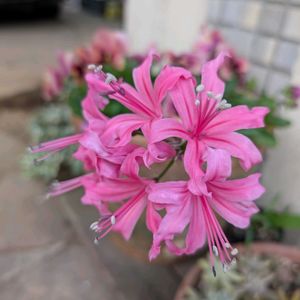 2025-12-2撮影 1. ダイアモンドリリー 1つ咲きました。 キラキラ✨を写すの難しい。 2. アレンジメント作り🌲 公民館で楽しい時間でした~🥰