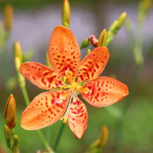 ヒオウギ(檜扇)🌿 鮮やかなオレンジ色🏵 凄い存在感! 災厄除去への祈りを起源とする京都の祇園祭りの期間中、魔除けのために民家の床の間や玄関へ飾られる檜扇😌 山野の草地や海岸に自生、午前中に咲き夕方にはしぼむ一日花。 2020.8.23📷みちのく民族村にて