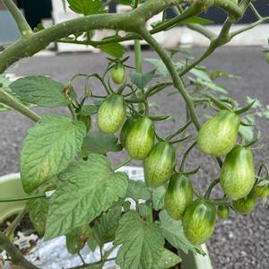 プチトマトがたくさんできてきました😆 血管みたいな模様があってちょっと怖いの、これで自然なんだったかな? 病気ではない、よね💦 梅雨で雨が多いけど、実が割れませんように😃