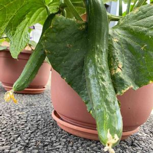 きゅうりです🥒 花を見付けてから1週間で、こんな大きくなりました😆きゅうりの成長は早いとは聞いていましたけど、本当にすごく早い! ミニきゅうりがたくさんできているので、この夏はきゅうりの食べ放題です😅