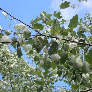 見上げると、白🌿 Populus alba🌿 まだ葉が若いので葉裏の白は薄い感じ☝️ もー少しでフェルト質の真っ白に🌿
