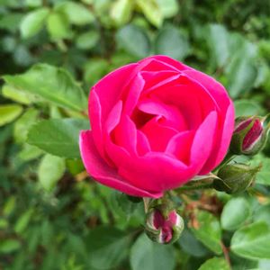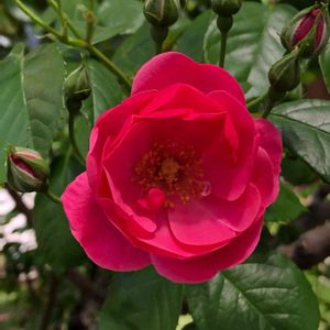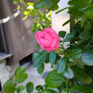 2021.4.11 バラのアンジェラがひとつ咲きました。濃いピンクが可愛い❣ エノキの下に隠れた目立たないところで、ひっそりと咲いていました。室内側からは見えなくて、気付かなかったわー。 今年のアンジェラのつぼみは、無数にあるので、これから開花ラッシュになりそうです。毛虫がいない今の時期は、葉っぱもきれいです。