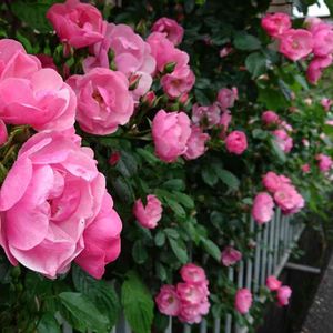 おはようございます❢ 雨の日曜日です。霧吹きのような細かい雨が降っています。バラのアンジェラが、たくさん咲いていて、良い景色です。 これで青空があれば最高だわー😊午後から晴れてこないかな〜✨