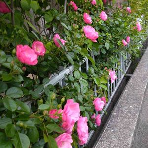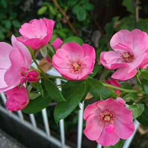 2021.4.27 我が家のピンクのバラシリーズで、一番古くから育てているアンジェラが、次々と咲いています。 冬の剪定の仕方が良かったのか、樹形もまとまって、小枝にたくさんのつぼみが付いています。 かわいいわー。明日は雨が降るらしいです。バラに傘を差してあげたいです。 写真で、アンジェラの奥のバラのヘレンは開花した花を全部切りました。強い雨で花が傷みそうなので、家の中で楽しみます。