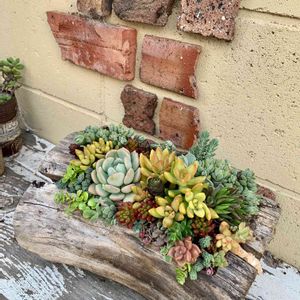 今日は 丸太に多肉の寄せ植えを しました😊🎶 かわいいー