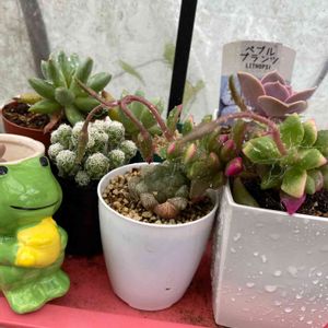 おはようございます! 朝は凄い寒さでしたね。(´-ω-)フーゥ… 私の多肉ちゃんの位置が毎朝変わるのでそろそろ何か(多肉ちゃんに)文言われそう(笑) この子は、去年Seriaからお迎えした子で。名札無しの名無しちゃんだったのですが。個人的に調べた結果、多分セダム属の銘月?ちゃんかな?となりました。(´^ω^`) 写真では分かりづらいですが、とても綺麗な黄緑なんですよ。どちらかというと、黄色が濃いかな?って感じなのですが、可愛いです(*´꒳`*) 名前の方は、まだ確信を得ていないので断言できません。もし、間違っていたら教えて頂きたいです(* > <)⁾⁾ また、暫くの間。朝晩の温度が5℃以下の日が続くみたいです。寒暖差が激しいせいで、体調が崩しやすくなるから、早く安定してほしいものです。 皆様も、出来るだけ体調を崩されぬようお気を付けて下さいね。:(。*ω*。):