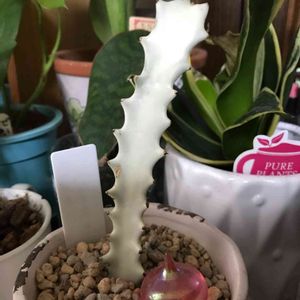 マーブルクイーンとして購入したのですが、何か違うような??と淡い期待を寄せ、マーブルクイーンのプレイト付けずニタニタしています。ハーフに近い葉も数枚あって、このまま育ってくれるといいけど😆