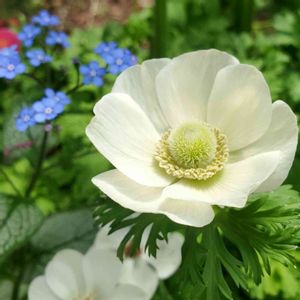 植え過ぎかな、思ったより小さいアネモネの花。でも蕾がいっぱい。種から育てたアリッサム、勿忘草、かすみ草。引越し後もなんとか枯れずに定着したようだ
