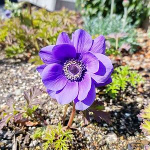 11月に植えたアネモネ・デカン球根の開花第1号💙 小さい蕾が地面から顔を出し始めてから毎日眺め🕵 ここ数日の暖かさでやっと開いた☺ 後に続く子たちも楽しみだな〜🤭