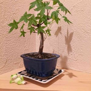 おはようございます😊 わが家で唯一の盆栽もみじさん ちゃんと紅葉してくれます✨ 福岡はまた☔️ 今日はカエル君を見習います( ´艸`)ムププ