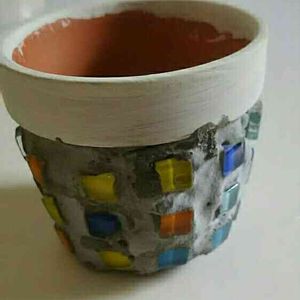 素焼きバチに 子供とセメントにガラスタイルを埋めて作ってみたのですが セメントが垂れるわ ガラスタイルがずれるわ スピードがいる作業で疲れました(-_-) もっと上手に、楽しくできる方法をどなたか教えてください(T-T)
