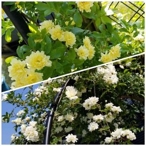 我が家のモッコウバラが花盛りです。 白はいい香りがして、大好きです☺️