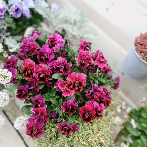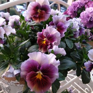 ビオラ祭りPart2 お迎えしたのは10株.˖٭.˖٭♡ どのビオラも可愛く癒してくれます😊 寒さが厳しい時は花びらがちぢれて 耐えてくれました❄️ ①ローブドゥアントワネット こんなにもこもこになるとは思ってなかったのでとっても嬉しい💕 ②うえたオリジナル ③レディ2 今期も出会えて幸せ😘 ④コルティルーチェ 鳥さんの好物のこの子は⁽⁽ଘ(。•ө•。)ଓ⁾⁾♡ 花びらがガタガタ 中心がブルーの素敵さんなんだけど とっても残念😢 過去pic1/25投稿 薄紫の花はプリムラ ⑤エッグタルト 初めての高級ビオラも ホムセンでわりとリーズナブルにお迎えできました🎶 高級な上に気難しさんかと思いきや 元気に沢山花を咲かせてくれて ビオラは強いな〜🤗