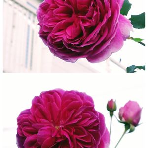 庭の薔薇ホーラ 花弁がビッシリの ロゼット咲き 花弁が落ちる前に 摘んでいます。 (^_^;)🎶