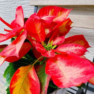 昨日、お連れしたポインセチアです💕 年々種類が増えてるので迷いました💦 王道の真っ赤も可愛いしピンクや白や黄色、オレンジ色にマーブル模様のようなのもありました😳 もちろん全部は置けないので、ちょっと変わったこの子を選びました🎵 うん、少しは12月ぽくなったかな😋