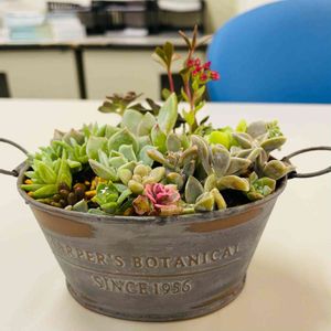 こんばんは♪ 同僚の方が、お迎えされた寄せ植え 可愛い💕です お名前を聞かれましたが、わからない子がいました💦 カラス葉ミセバヤ? ヒダカミセバヤ? まで にたどりつきました 正解🤭 どなた様がお分かりの方教えてください