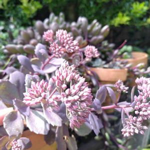 少し前だけどミセバヤチーム✨ 斑入りミセバヤは年々株小さくなってるし 植え替えサボってるからだろう😅 右上カラスミセバヤはちゃんと植え替えしてるから株大きく元気🙆♀️