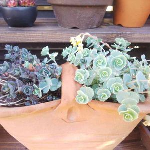 爪蓮華の花が咲いて終わってたブロークンポットを植え替えました。 なんとなく外に強そうなコ達を盛ってみた。 セダムちゃん達をもっと入れないとかな〜☺️ 手前は外置きしたら枯れ果てていたカラスミセバヤとランプランツ 昨年寄せたチマ寄せのセダムちゃんの若葉色がキュートです。 桜吹雪の色の違いに驚く。 濃い方がこの冬外だったコ✨