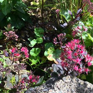 ミセバヤ色々~ ↖️丸くて大きめの縁取りの葉が美しい越中ミセバヤ ↗️もう咲いてるユーパリミセバヤ(夕張ミセバヤ) この種類は小さな葉の小型種!?なのかな ➡️赤葉日高ミセバヤ 日高ミセバヤなので葉は小さめ まださほど赤さは目立たない ↙️またもやup、サフィニアアート ももいろハート 何か元気 ⬇️カラスミセバヤ 昨日、花だけあげたので葉っぱも ちょっと暴れん坊 ↘️猛暑の中、咲かせてしまったセプタードアイル 本来の姿ではないけど···こんな野生っぽいのも咲きます( ˆ꒳ˆ; )