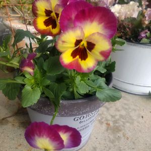 こんばんは! カネコ種苗さんの カーリーウィッチ🌼 2年ぶりのお迎えです✨ 黄色とパープルの グラデーションが素敵ෆ⸒⸒ 可愛いビオラと共に𓂃𓂂ꕤ*.゚