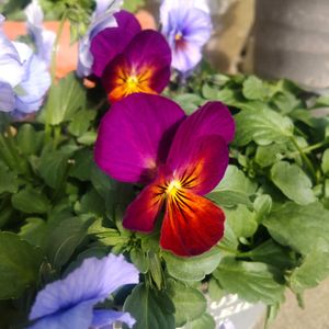 おはようございます😊 穏やかで真っ青な🔵☀️°🌈 ➊➋ プティシャトン 😸かわいい子猫😸 中輪咲きの ユニークなパンジーちゃん 植えつけてから 1ヶ月 株もガッツリ根づき かわいい子猫ちゃんが 次々😸 咲き始めました🧡 朝日がマブシ~( *д* )✨☀…🤳 色々なお花と 寄せ植えにしています🪴 𖤣𖥧𖡼.𖤣𖥧𖡼.𖤣𖥧𖡼.𖤣𖥧𖡼.𖤣𖥧𖡼. 今日も ステキな一日を〜🤗💖⁺.˖*