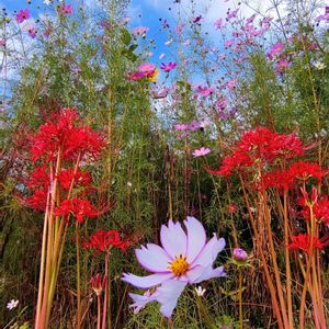 ⋆.˚⊹⁺今朝の畑から 我が家の秋桜🤗 曼珠沙華と共に⋆.˚⊹⁺⋆.˚⊹⁺ ˗ˋˏ(⌯'ᵕ'⌯)ˎˊ˗🐿️🍀