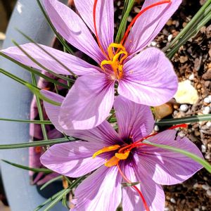 🏔ヤッホー☀良い天気 今朝の庭からサフラン 花言葉✾喜び 陽気😊 仕事移動 ガマの穂ムギュゥー😆😁😸 今日もいい日に⤴️⤴️🕊 🙋♀🤗🐿️🍀