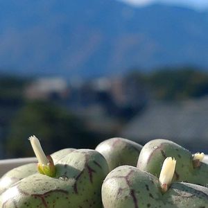 ᵒᑋᵃᵞᵒ☀︎*.久々の多肉🚀😁 我が家のコノフィツム 清姫 👀ツンツン ワァー蕾が ⸜(ᯅ̈ )⸝ビックリ❕ 摩訶不思議石ころチャン パっと花咲くかな😊 玉彦君と見守ってるよー 🪄素敵な今日をお過ごしください 🤗🐿️🍀