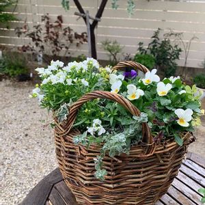 白花でナチュラルかご寄せ🧺 1ヶ月くらい経っております⋆⸜ ⚘ ⸝⋆ すでに、溢れている、、笑 *ビオラ ファーマーズクラフト よく見ると白の中に1つだけパープル😂 *リナリア フィリア 初めて見かけたリナリア、タグにはヒメキンギョソウと。 小花が可愛いです◡̈⋆