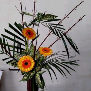 昨日のアレンジメント教室のお花 お花は少なかったけど ガーベラがインパクト有ります🌿🌿 ③先生宅の玄関のお花 サザンカだと思いますが淡いピンク色が可愛らしいです🍥🩷