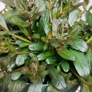 アジュガ💚チョコレートチップ 見切りコーナー出身ですが、冬を越えこんなにモリモリツヤツヤ元気になりました😆 株分けで地植えにしたコよりも窮屈そうな鉢植えのコのほうが好調です😅蕾もたくさん❣️ 🏷️金曜日の蕾たち