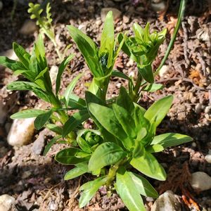 チョウジソウ🌱 真冬に買ったときは茶色い塊でした😅 「丁字草50円新芽出ています!」という手書きの札、、、でもこの茶色いのホントに新芽??? 検索したら水色のお花可愛いし半日陰OKということでダメ元購入、植え付けました 冬の間は全く動きがなく生きてるのかわからない状態でしたが、先日ふと見ると青々とした葉っぱが!生きてた!😆😆😆